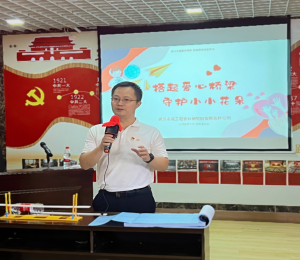 課堂后,姑嫂樹社區(qū)黨委書記周順生與“愛心花朵”教育服務(wù)中心的向老師代表愛心機構(gòu)和受助的困難家庭感謝武漢市政院對愛心事業(yè)的關(guān)注、對愛心機構(gòu)的所有困難家庭孩子的關(guān)愛,向武漢市政院敬贈錦旗,對武漢市政院的社會責(zé)任感和家國情懷、擔(dān)當(dāng)精神表達敬意。