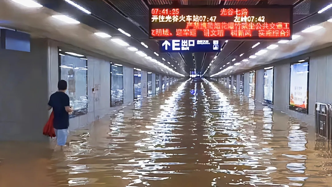 時間回到2019年6月21日,武漢經(jīng)歷了當(dāng)年24小時最大累計降雨量174.7毫米的暴雨,高新大道與光谷七路路口出現(xiàn)了嚴(yán)重漬水,路面最大漬水深度達(dá)到50cm,且有部分雨水通過有軌電車與地鐵換乘通道進(jìn)入地鐵站點,嚴(yán)重影響周邊交通出行。
