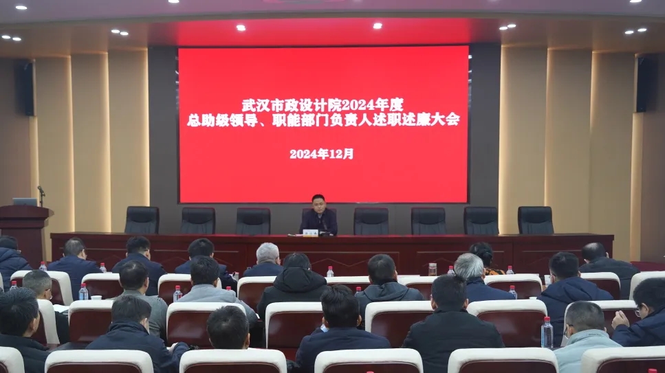 ? ? 12月24日下午,武漢市政院組織召開了2024年度總院中層干部述職述廉暨民主測評大會。公司領(lǐng)導(dǎo)班子成員、各部門(單位)負(fù)責(zé)人、職能部門全體員工共計70余人參加會議。市城投集團公司副總經(jīng)理,武漢市政院黨委書記、董事長汪小南出席會議并講話。