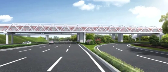 ? ? 跨三環(huán)線慢行橋采用桁架梁結(jié)構(gòu),桁架以“江城鐵運(yùn)”為設(shè)計(jì)概念,以飛馳而過的火車為設(shè)計(jì)意向,形成動(dòng)感而具有生命力的橋梁造型。在桁架之間固定的防拋網(wǎng)中采用連綿起伏的山形鋼條作為裝飾,如火車飛馳經(jīng)過群山,使天橋整體富有故事感。