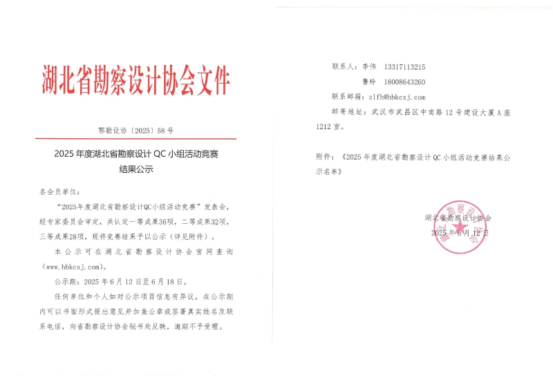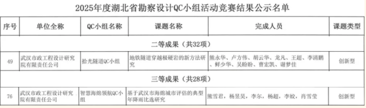 武漢市政院再傳捷報(bào)!近日,湖北省勘察設(shè)計(jì)協(xié)會(huì)組織召開的“2025 年度湖北省勘察設(shè)計(jì)QC小組活動(dòng)競(jìng)賽”中,武漢市政院選送的兩個(gè)QC小組表現(xiàn)亮眼:地空事業(yè)部"拾光隧道QC小組"憑借創(chuàng)新成果斬獲競(jìng)賽二等獎(jiǎng),規(guī)劃研究事業(yè)部"智慧海綿領(lǐng)航QC小組"榮獲三等獎(jiǎng)佳績(jī)。