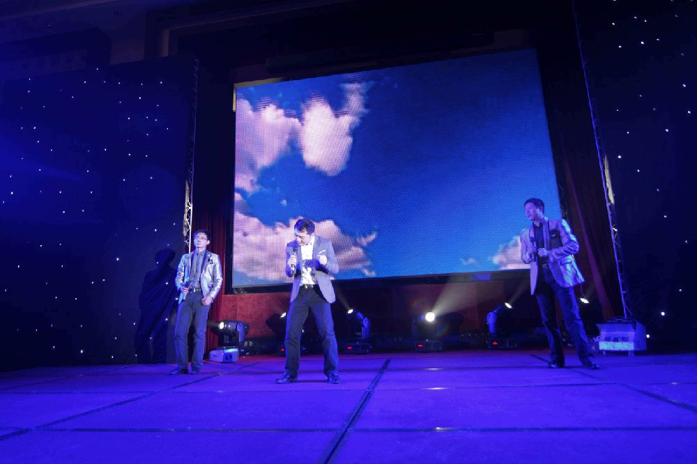 ??? 總結(jié)表彰大會結(jié)束后,一臺異彩紛呈的迎春文藝演出拉開了帷幕。喜氣熱鬧的《東方鼓韻》,寓意著新一年的奮進(jìn)與收獲;頗具詼諧意味的舞蹈《江南STYLE》,引得現(xiàn)場爆發(fā)出陣陣掌聲和笑聲;三曲經(jīng)典老歌匯成的情歌串燒,則喚起了現(xiàn)場觀眾對經(jīng)典的美好回憶。文藝演出在《新年快樂》的歌聲里落幕。