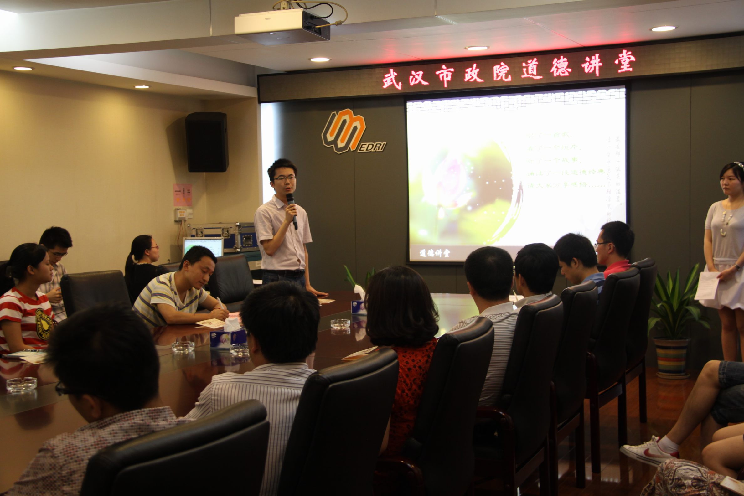 ??? 6月14日下午,公司在三樓會(huì)議室舉行了“道德講堂”教育活動(dòng),共有包括青年員工代表、業(yè)務(wù)骨干在內(nèi)的30余人參加了本次活動(dòng),公司相關(guān)領(lǐng)導(dǎo)出席了活動(dòng)。