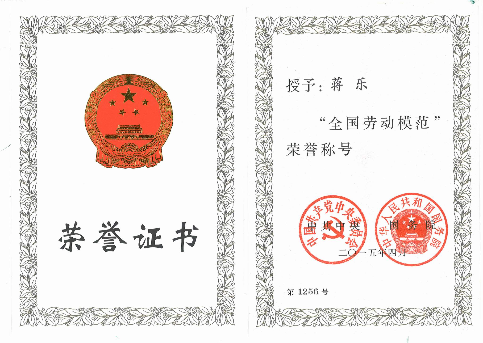 ??? 這是公司員工近年來獲得的最高榮譽,代表了黨和國家對蔣樂同志工作的充分肯定。希望公司全體員工認真學(xué)習(xí)蔣樂同志愛崗敬業(yè)、樂于奉獻的勞模精神,奮力拼搏、銳意進取,為實現(xiàn)公司的持續(xù)、快速、健康發(fā)展做出新的更大貢獻。