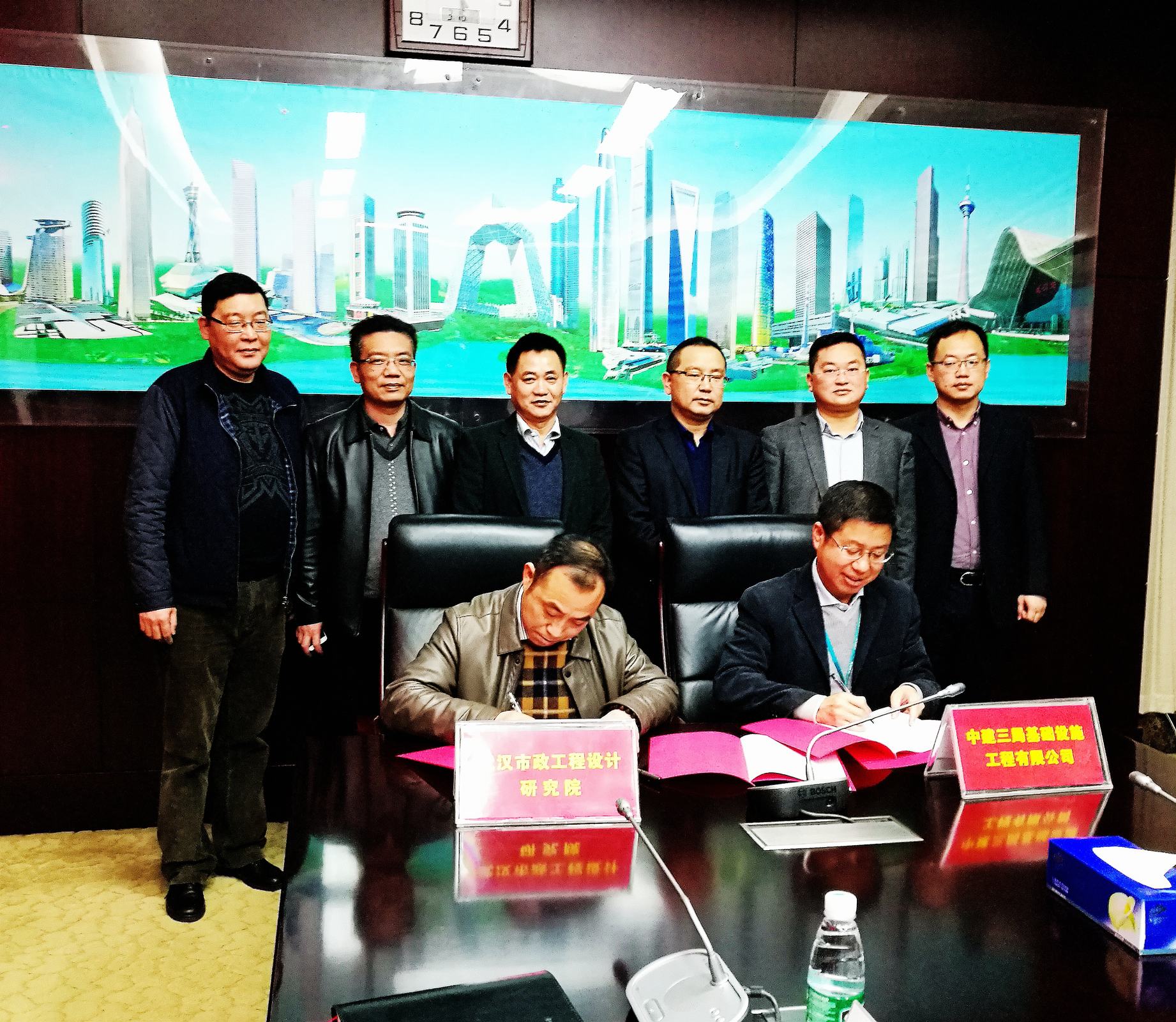 ??? 公司總經(jīng)理姚華和中建三局基礎(chǔ)設(shè)施工程有限公司董事長王洪濤分別在戰(zhàn)略合作協(xié)議上簽字。