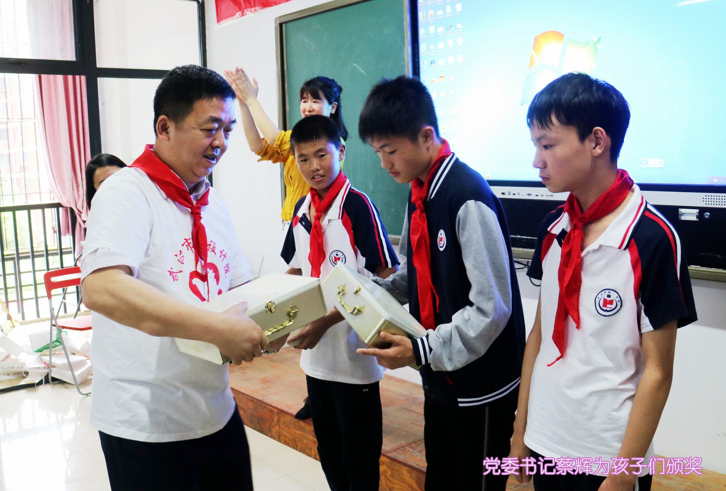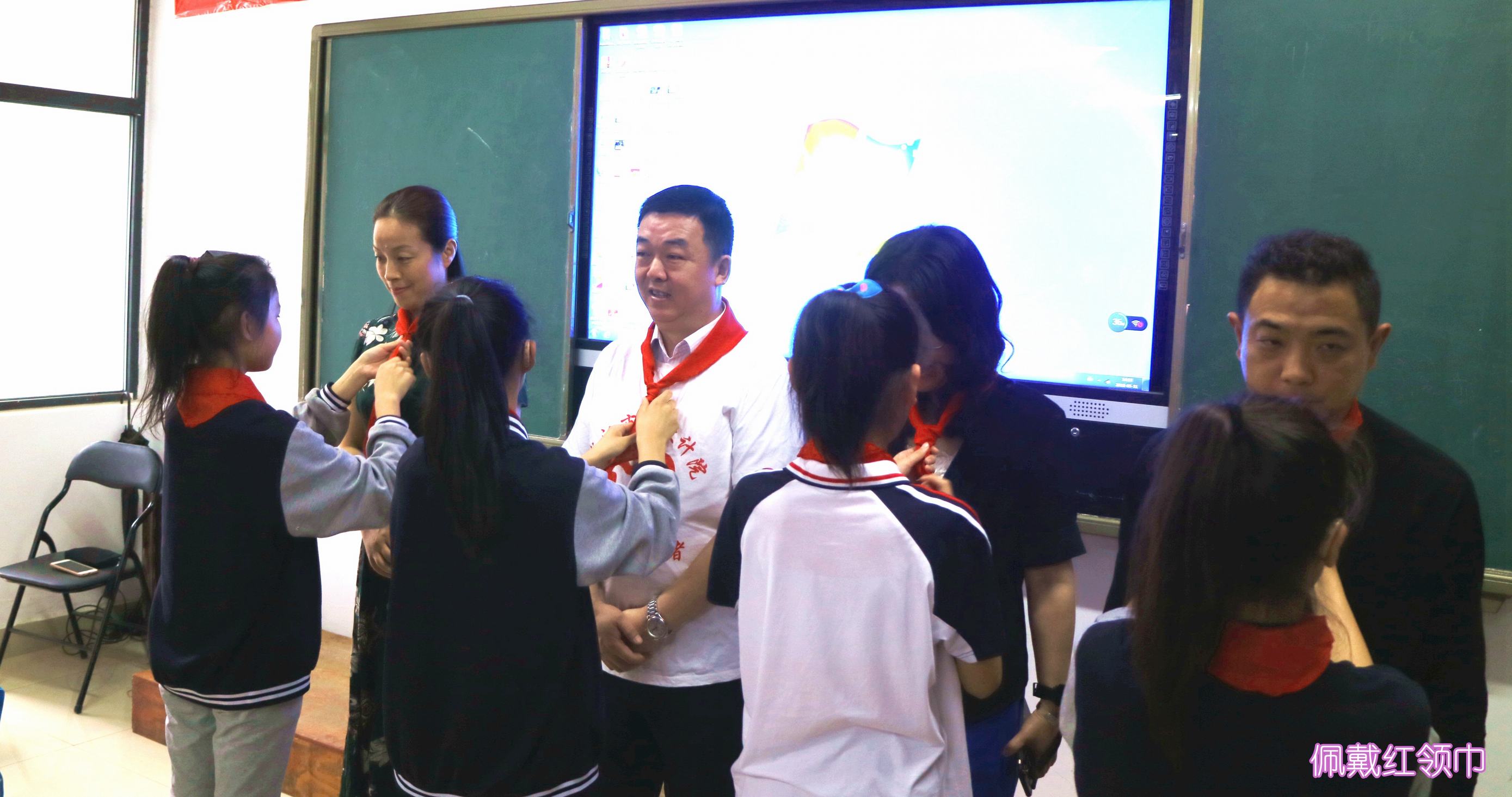 ??? 教室里,志愿者們與孩子們并排而坐,時(shí)而低聲或通過手勢進(jìn)行交流。公司黨委書記蔡輝、團(tuán)總支書記李俊和學(xué)校黨支部書記舒敏熠、副校長吳云鵬、楊小玲、團(tuán)委書記楊茜等步入會場時(shí),全場響起熱烈掌聲,學(xué)生代表為他們系上紅領(lǐng)巾,并用少先隊(duì)隊(duì)禮向他們致敬,領(lǐng)導(dǎo)們則豎起大拇指對他們表示感謝。