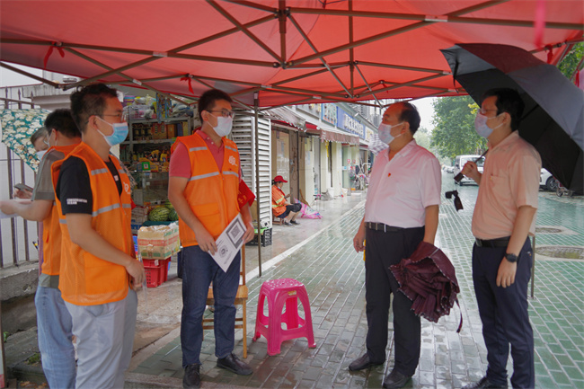 8月10日下午,公司黨委書記、董事長(zhǎng)武興治,黨委副書記、紀(jì)委書記談逢陽(yáng)前往公司對(duì)口下沉社區(qū)古二社區(qū),看望慰問冒雨值守在管控卡點(diǎn)的公司下沉黨員。