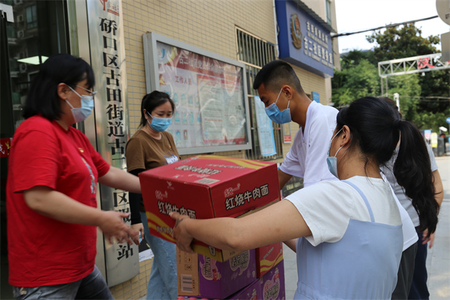 疫情無情人有情。2021年8月6日下午,公司黨委副書記、紀(jì)委書記談逢陽代表公司向?qū)谙鲁恋墓哦鐓^(qū)捐贈了防疫物資以及生活用品,并詳細(xì)詢問了社區(qū)防控需求情況