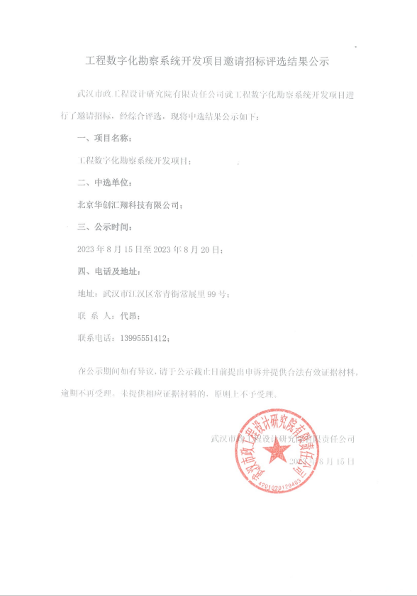 工程數(shù)字化勘察系統(tǒng)開發(fā)項目邀請招標評選結果公示